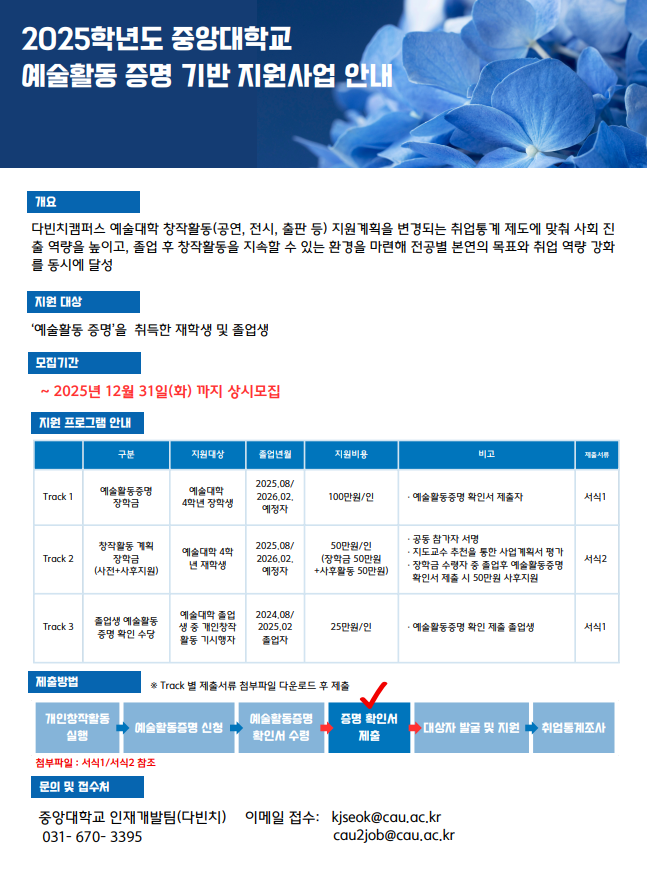 2025학년도 중앙대학교 예술활동 증명 기반 지원사업 안내